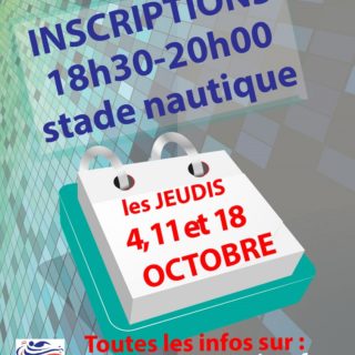 POURSUITE DES INSCRIPTIONS POUR LA SAISON 2018-2019 jeudis 4, 11 et 18 octobre 2018 au stade nautique de 18h30 à 20 h00. Dépêchez-vous, après il sera trop tard !!!