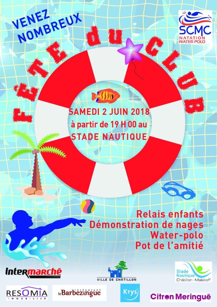 AccueilArticle :Fête du club samedi 2 juin à 19 h au Stade nautique Fête du club samedi 2 juin à 19 h au Stade nautique Publié le 23/05/2018 • Article : Venez nombreux au Stade nautique le samedi 2 juin à 19 h pour participer à la fête du club. Au programme : démonstration de nage, relais enfants, water-polo et pot de l’amitié. On vous attend !